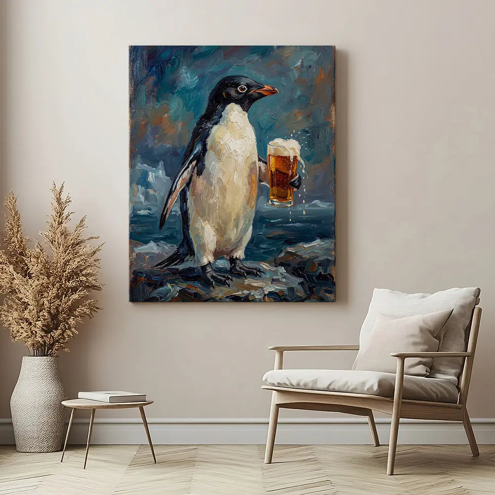 Penguin Drinking Beer